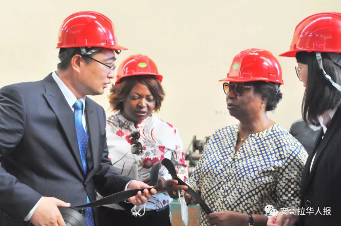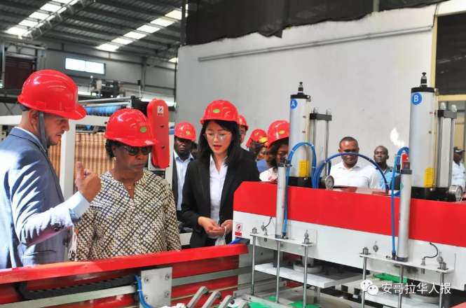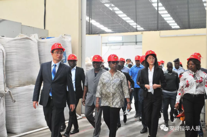 本報訊:2018年6月4日,安哥拉工業部長馬丁斯、工業部國務秘書、北寬扎省副省長、北寬扎省工業廳廳長等一行參觀由華人投資經營的福盈安哥拉塑料制品有限公司。
