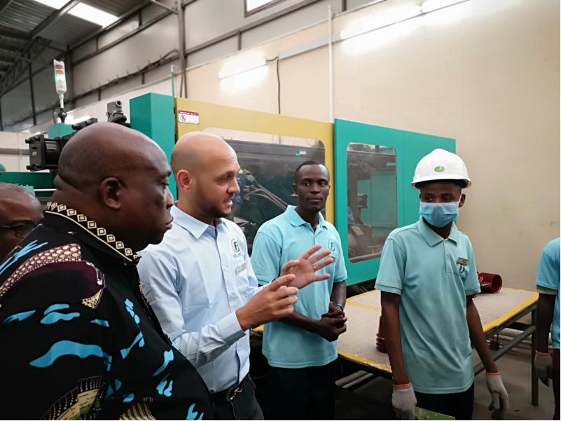 FULL BLISS ANGOLA公司總經理傅強先生,也介紹了公司今年即將8月份開工的二期工廠項目,該項目占地面積為1000平米,與一期一樣大。二期建成以后將把現在每月120噸的塑料垃圾處理能力提高到400噸每月。對安哥拉整體的環境治理起到顯著作用。