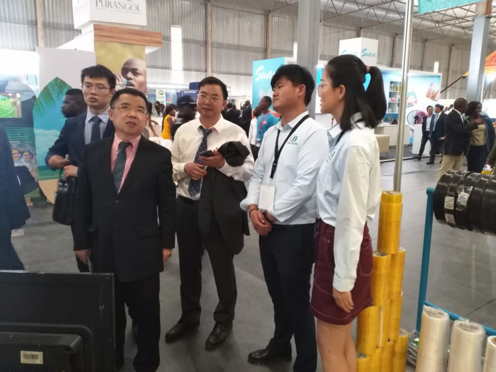 我們公司展出產(chǎn)品包括各種包裝產(chǎn)品實(shí)物和圖片,如各種塑料袋、育苗袋、魚袋、保鮮膜、塑料刀叉、農(nóng)用微灌水帶、塑料盆等。我們公司的項(xiàng)目,一直以來都受到安哥拉政府的重視和歡迎。當(dāng)?shù)弥镜亩跀U(kuò)產(chǎn)項(xiàng)目也正在有序的推進(jìn),并將在2020年初竣工投產(chǎn),大使連連稱贊。